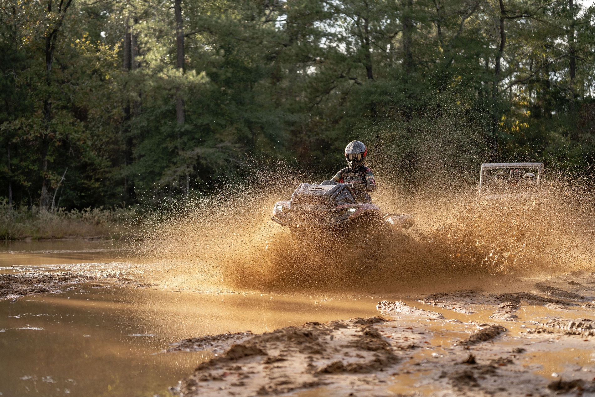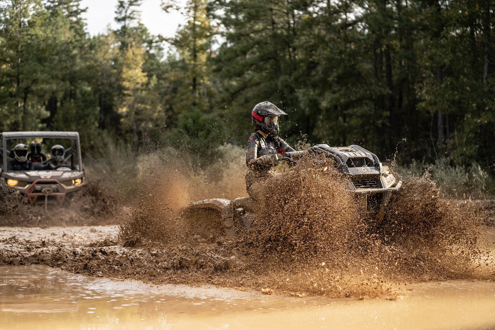 Auf Langlebigkeit ausgelegt, besiegt jeden Schlamm! CVT/Motoransaugung und Auspuffanlage mit Schnorchel, versetzter Kühler, Visco-4Lok Frontdifferential und Rotax-Leistung für unterwegs!